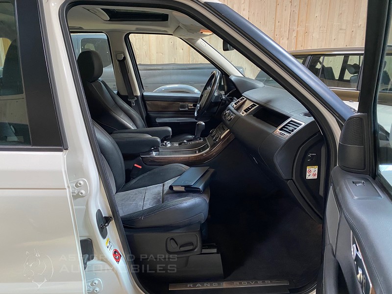 Superbe Range Sport TDV8 272cv avec son carnet et double de clefs, blanc sellerie full cuir et alcantara noir, GPS hifi Harman Kardon, sièges électriques, double vitrage, toit ouvrant, jantes aluminium de 20 pouces, colonne de direction électrique, aide à l'accès, radars de stationnements avec CAMERA DE RECUL, phares xénon. Suspension pneumatique, attelage jamais utilisé et sans la boule, téléphone bluetooth, prise USB? PHARES XENON FEU LEDS.