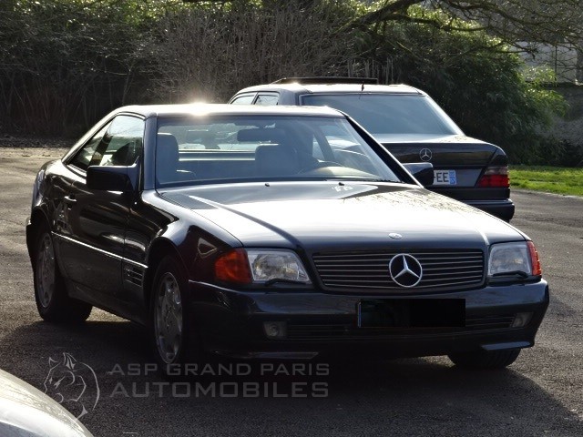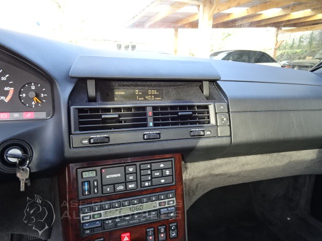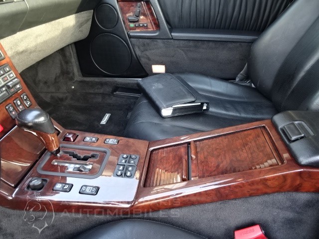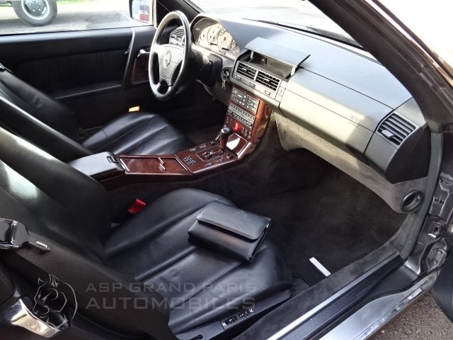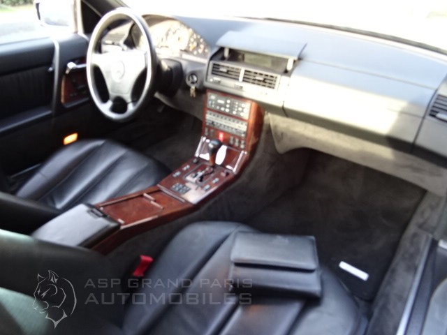 Mercedes SL 600 V12 4 Places avec hard top, filet anti remous, sièges électriques à mémoires, sièges chauffants, sièges gonflables droite et gauche, suspension piloté, système audio Becker, ordinateur de bord avec écran dans le vide poche, rétroviseur intérieur électrique, colonne de direction électrique.