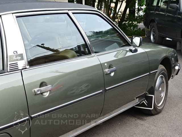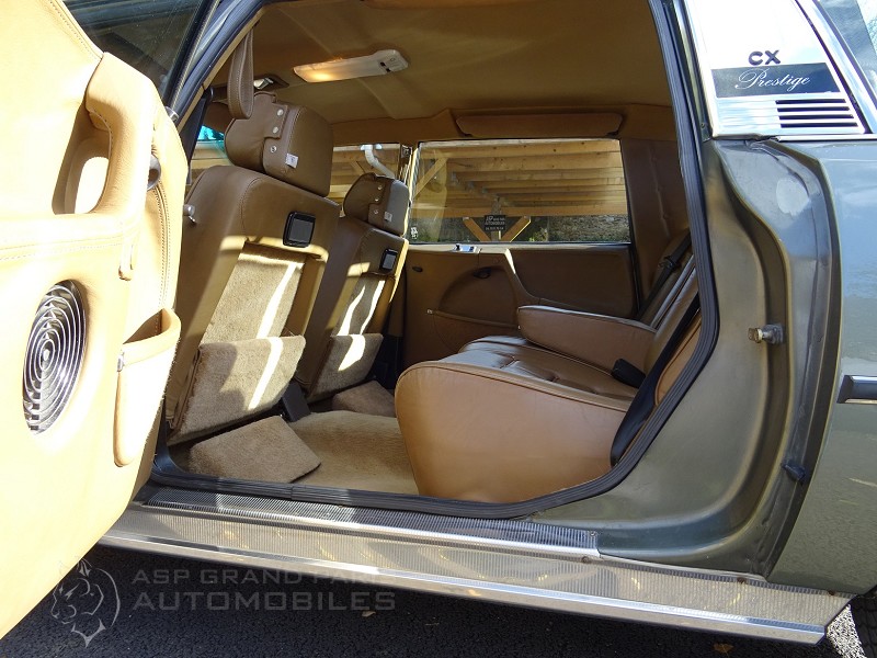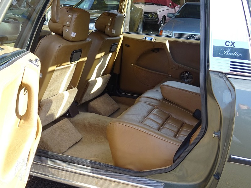 Citroën CX Prestige toit vinyle du 29.06.1979 seulement 42000km 13 chevaux fiscaux, direction diravi, 4 vitres électriques, climatisation, boite manuelle, avec l’ensemble de ses carnets et livrets de bord d’origine. Sellerie full cuir marron d'origine, épaisses moquettes d'origine, ciel de pavillon neuf et store de plage arrière, cette voiture fonctionne à merveille et se trouve dans un état concours !! Avec contrôle technique.
