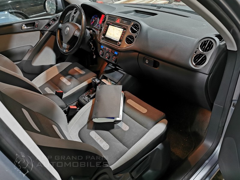 Tiguan Sportline tiptronic 2.0 tdi 140 4 roues motrices équipé de phares automatiques, volant cuir multifonctions, jantes aluminium, sièges chauffants, grand GPS, caméra de recul, radars de stationnements avec son double de clefs et son carnet.