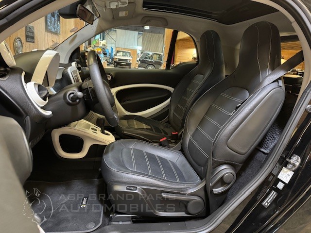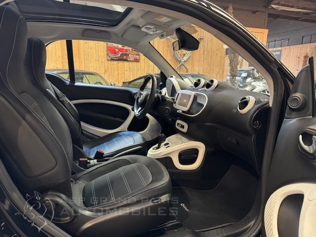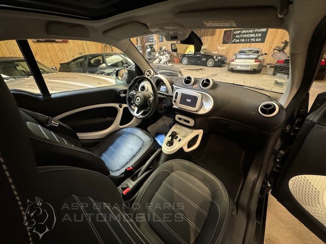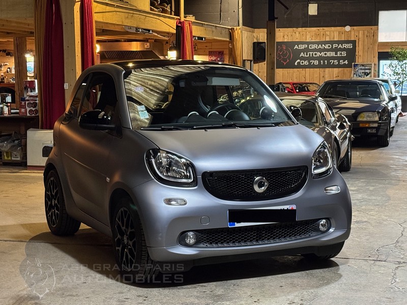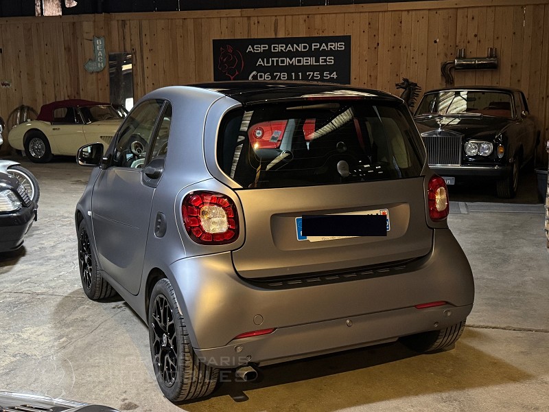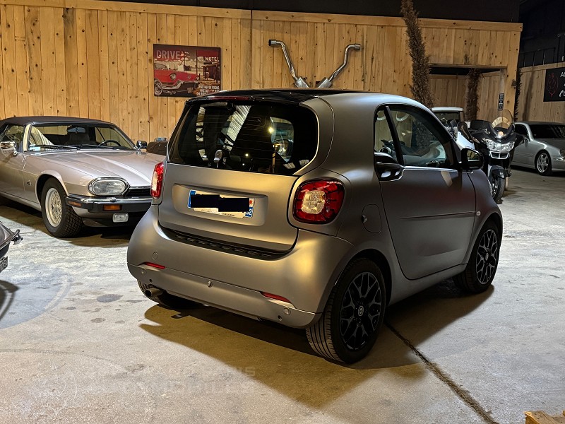 SMART FORTWO PRIME Gris mat, PALETTES AU VOLANT, régulateur de vitesse avec limiteur, toit panoramique, détecteur de lignes, start stop, hifi, carplay, sellerie cuir noir, sièges chauffants, jantes aluminium noir brillant, carnet et double de clefs.
