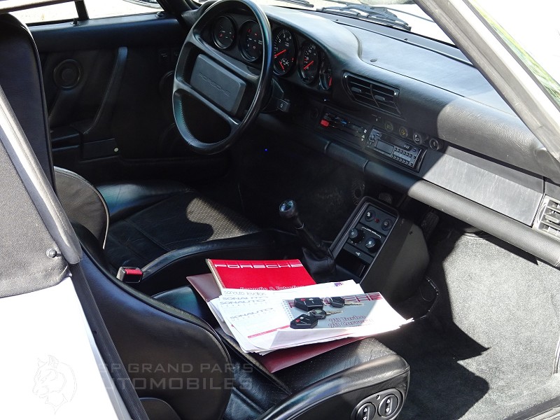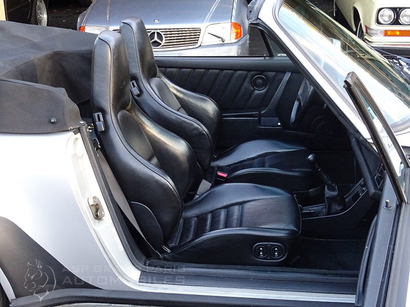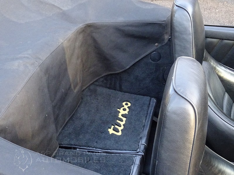 Porsche 930 Turbo Cabriolet G50 du 29.09.1989 15 chevaux avec seulement 53000km certifiés Voiture Française d'origine dans un état proche de celui d’origine intérieur comme extérieur, sellerie full cuir noir, sièges sport, fermeture centralisée, boite 5 vitesses, différentiel à 40%, kit levier de vitesse court, la capote électrique est d’origine en alpaga avec son couvre capote et sa sacoche, climatisation fonctionnelle au nouveau gaz, système audio CD, pare-brise en verre feuilleté SEKURIFLEX et teinté vert progressif, carnet d'origine avec double de clefs et télécommandes. Révision complète vidanges moteur boite filtre à huile et air, remplacement des filtres à essence ainsi que des pompes à essence, accumulateur et régulateur de pression, remplacement du liquide de frein, des bougies et faisceaux avec tête d'allumage, remplacement des plaquettes de freins et des 4 pneus.