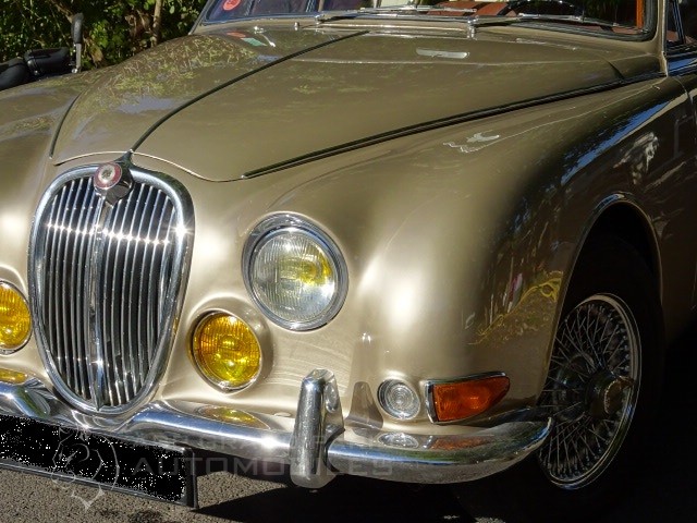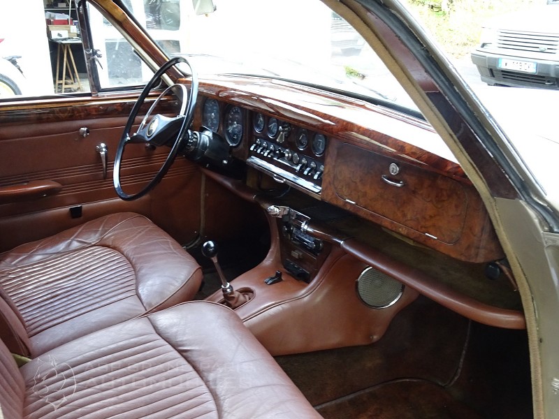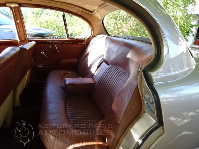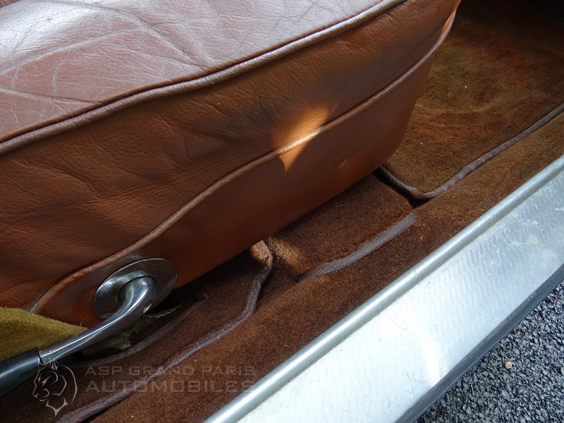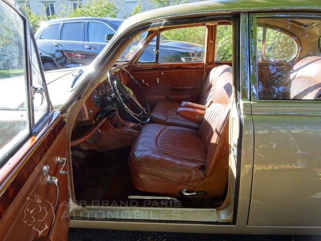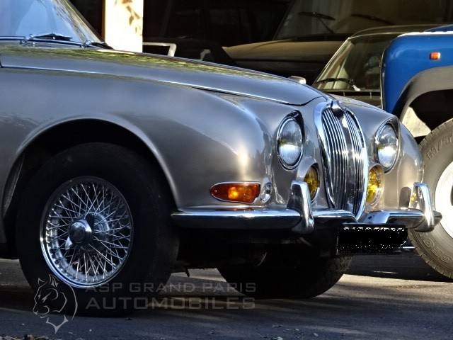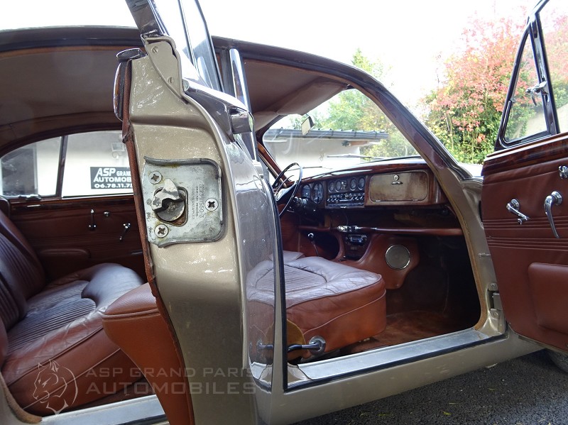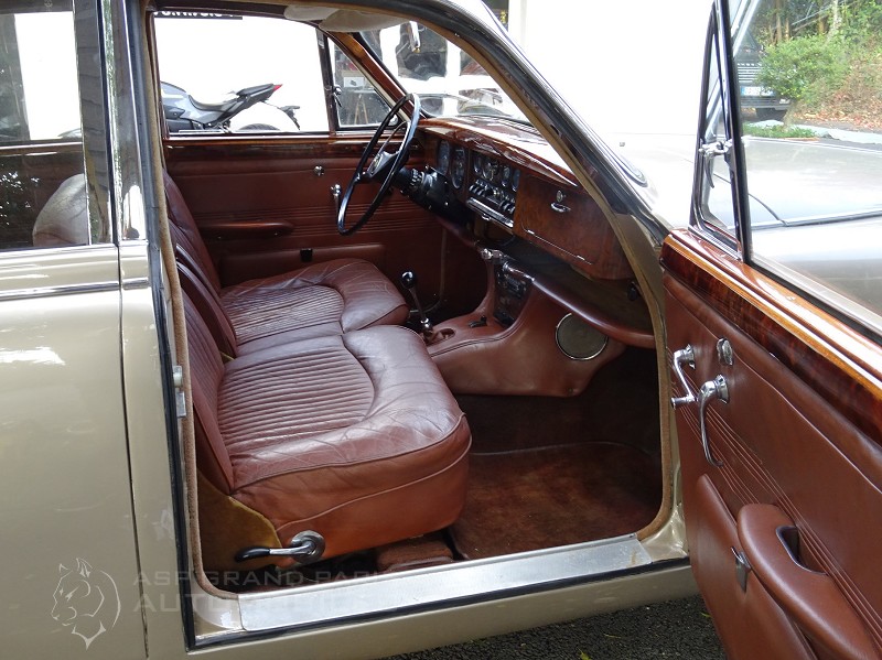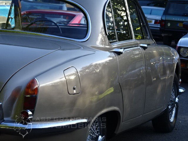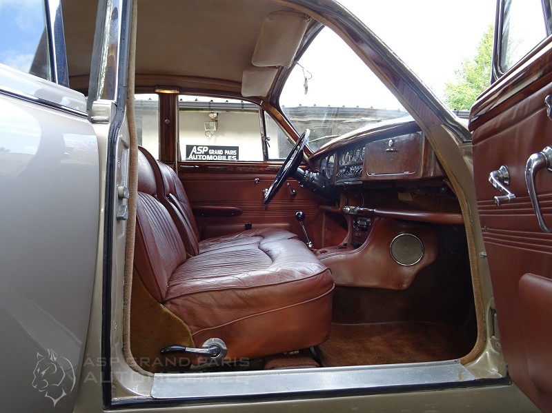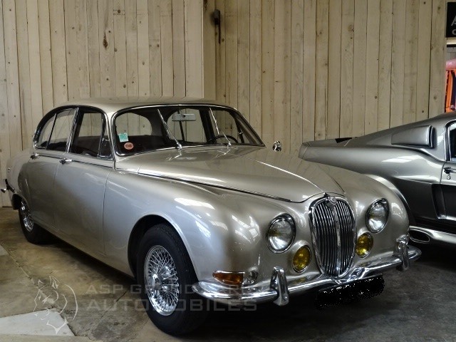 Jaguar MARK2 TYPE S 3.8 Matching number Matching colors mise en circulation le 18/11/1964 avec 88000km seulement. Beige métallisé sellerie cuir marron. Moteur 6 cylindres en ligne 3.8 carburateurs SU, boite manuelle 4 vitesses plus Overdrive, magnifique sellerie cuir marron d'origine en très bel état, les moquettes sont elles aussi d’origine et en parfait état, la boite à outils est présente dans la malle arrière, roues à fils, autoradio d'origine, ligne d'échappement inox neuve, pompe à essence neuve. Peinture neuve dans sa teinte d'origine. Aucune corrosion, remplacement des étriers et disques de freins avant et arrières, remplacement du liquide de frein, roulements avant neufs, silentblocs tirants de train roulant arrière neufs, Cette Jaguar sera bientôt prête à prendre la route.
