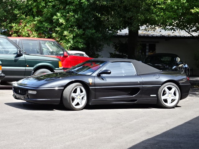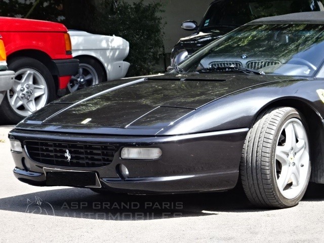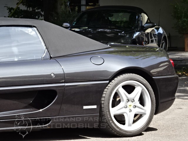 FERRARI SPIDER 355 Boite mécanique anthracite métal sellerie cuir noir, pneus neuf, suspension pilotée, climatisation, échappement inox, distribution neuve, véhicule avec son carnet mallette cuir et double de clefs. Version 5.2, la plus rare!!