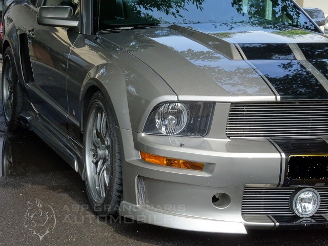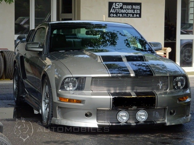 Ford Mustang 550 XV 4600CM3 kit CERVINI C500 ELEANOR de 2009 10500km réel boite automatique, gris plomb bandes noir sellerie full cuir noir, toit panoramique, GPS téléphone Bluetooth, écran tactile, caméra de recul, échappement latéraux. Immatriculation Luxembourg, immatriculation Française à la charge de l’acquéreur. 4 pneus neufs.