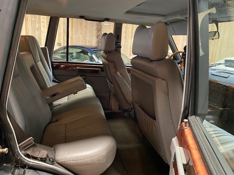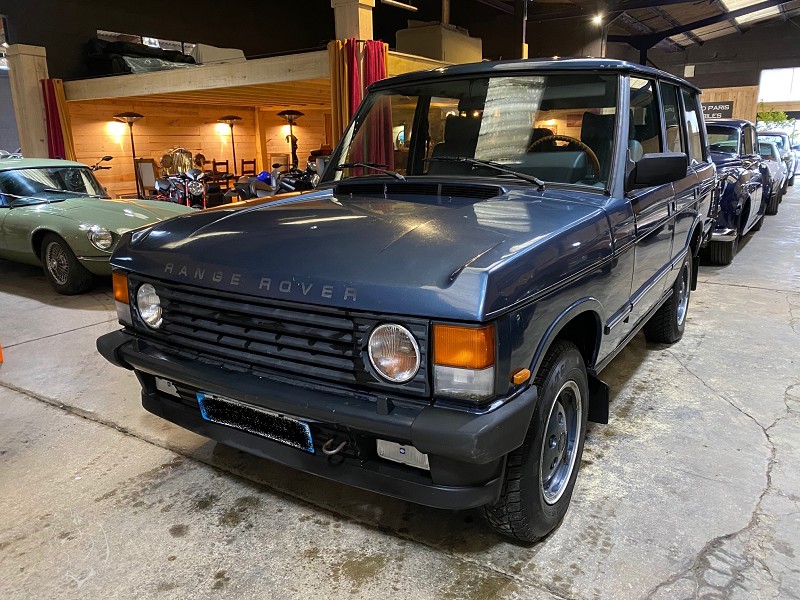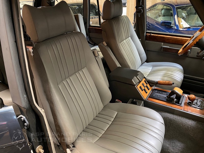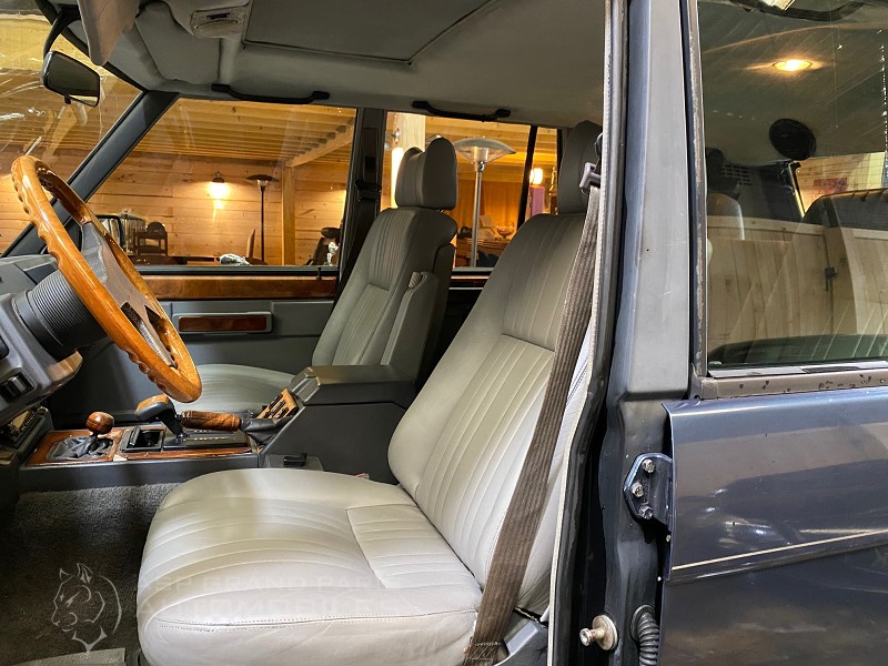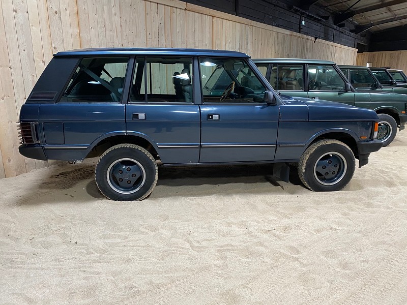 Range Rover Classic vogue V8 3.5 en boite automatique, en peinture d'origine bleu métal sellerie cuir gris, toit ouvrant, climatisation. Grosse révision effectuée, pneus neufs, réservoir essence neuf, pompe à essence, canalisation, débitmètre, allumage et bougies, toutes les vidanges et graissages. Révision des commandes de sièges. Carnet d'origine.