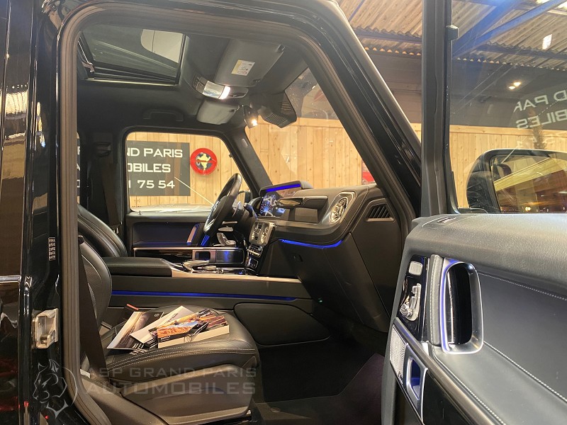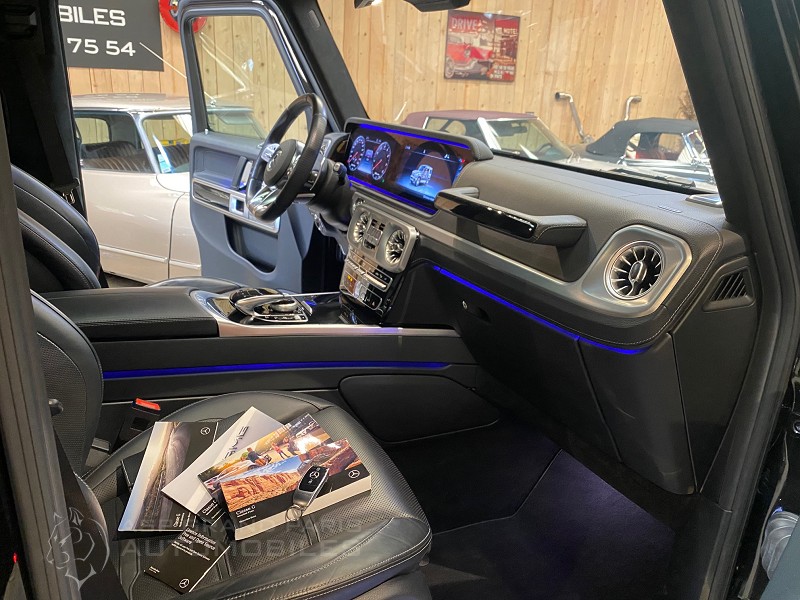 Mercedes Classe G63 AMG carte grise Française, sellerie full cuir noir finition piano black, connexion Bluetooth téléphone et audio, sièges chauffants et rafraichissants, réfrigérateur avant, caméra 360,, double vitrage, toit ouvrant, attelage, sièges massants, hifi, jantes forgées, détecteurs de lignes. Carnet et double de clefs, véhicule dans un état proche du neuf.