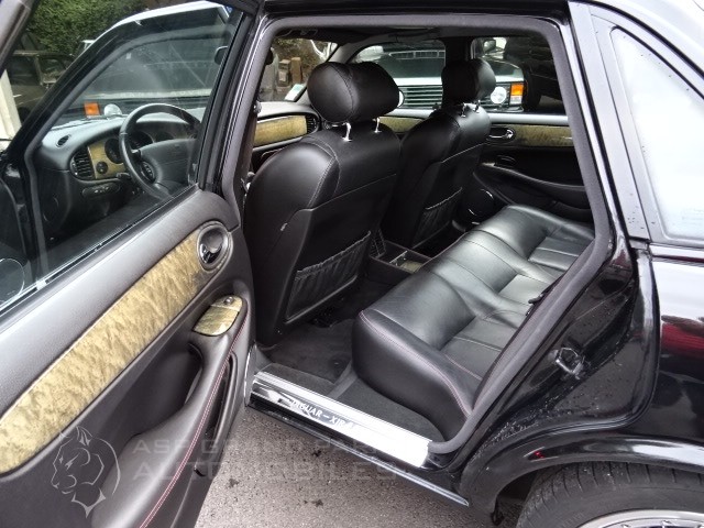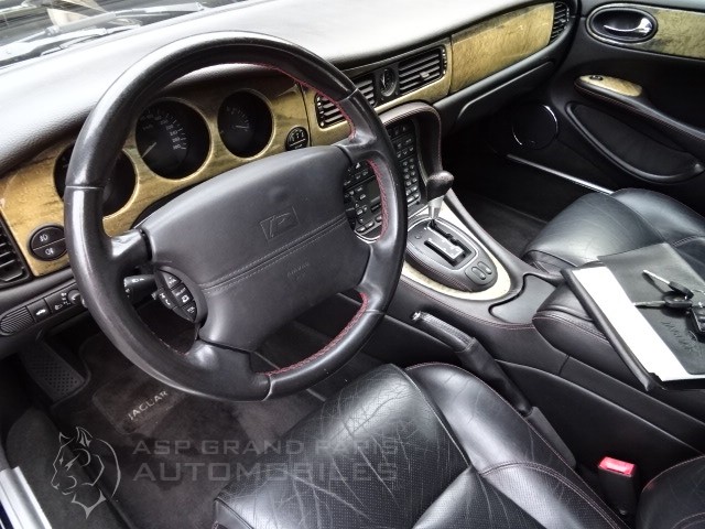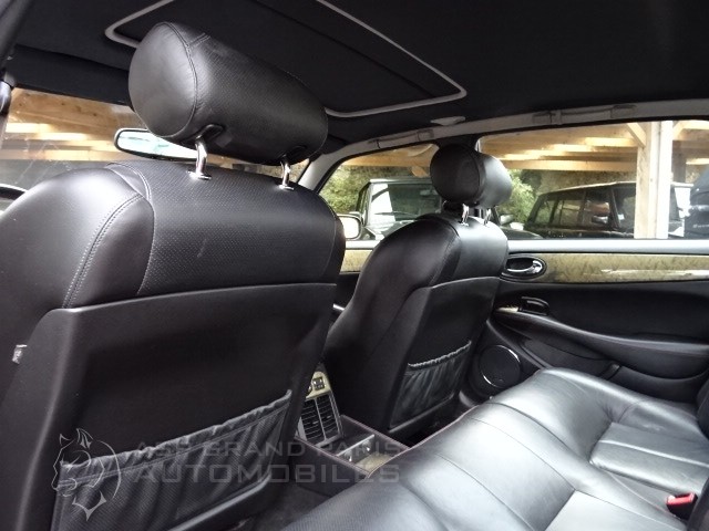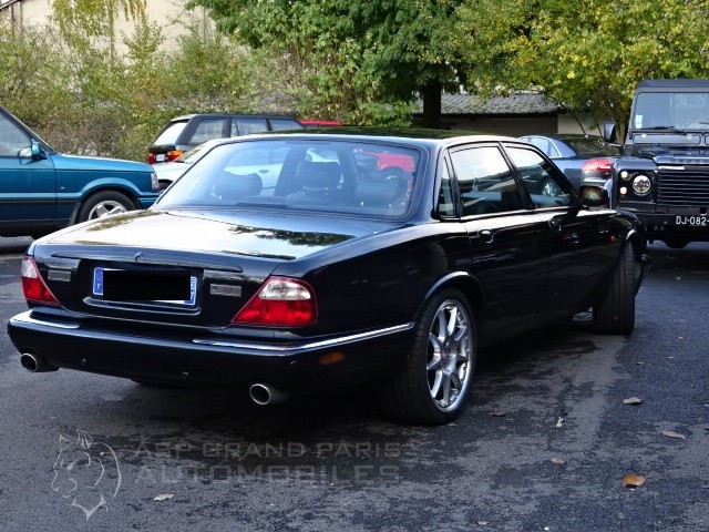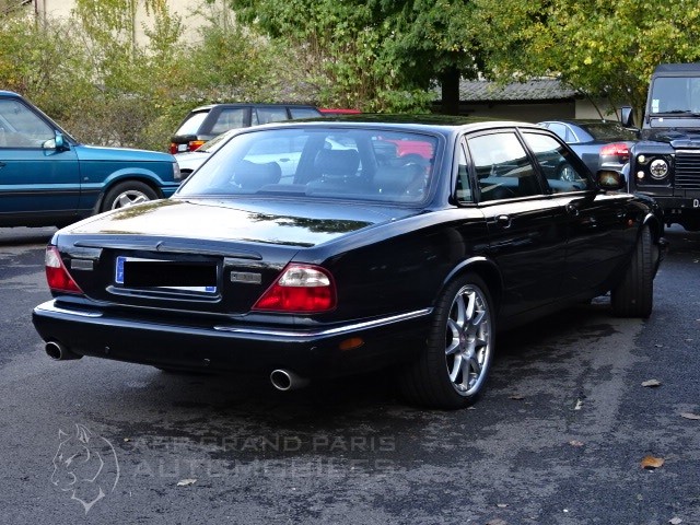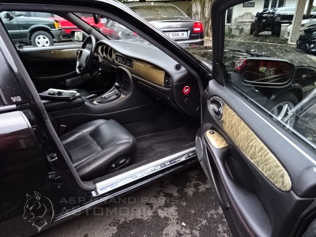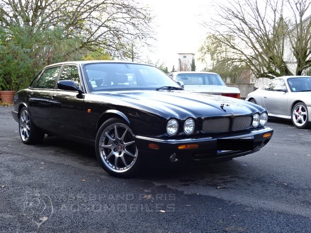 Jaguar XJR 100 V8 SUPERCHARGED Noir full cuir noir freins Brembo, jantes BBS colonne de direction électrique, toit ouvrant, système audio ALPINE sièges électriques et chauffants avant et arrière, avec son carnet d'origine et son double de clefs.