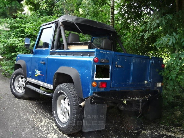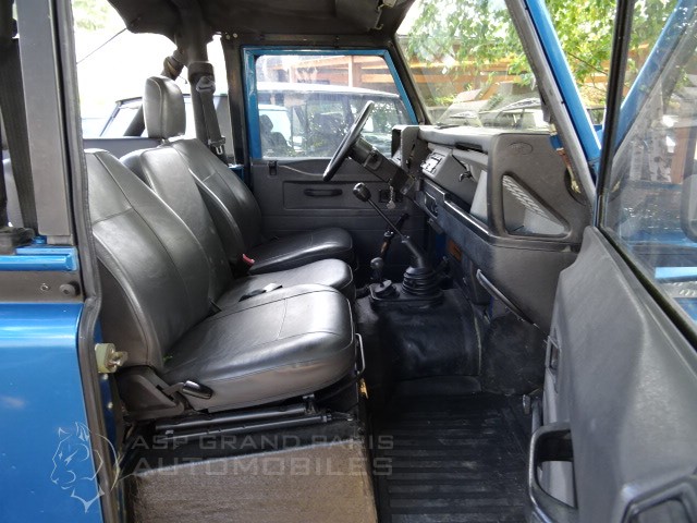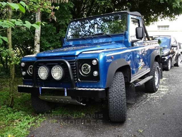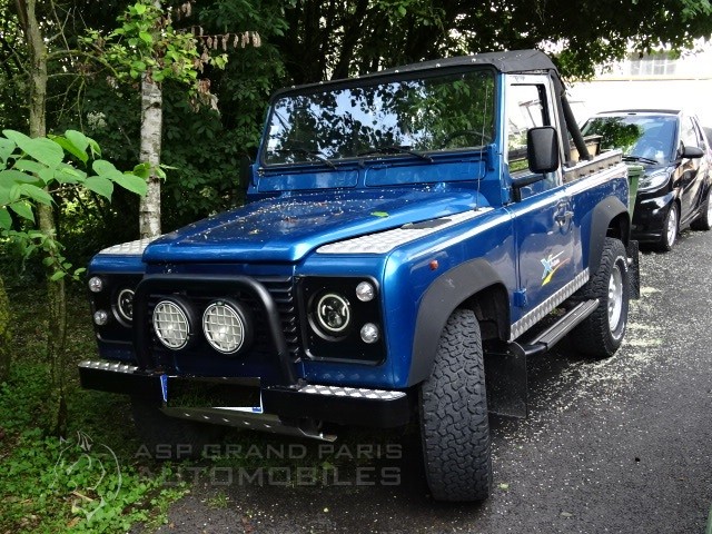 Land Rover Defender 300 TDI du 12.06.1996 avec 190000km au compteur bleu métal sellerie grise. Attelage, jantes aluminium montées en BF GODRICH, phares longue portée, phares leds, marche pieds,