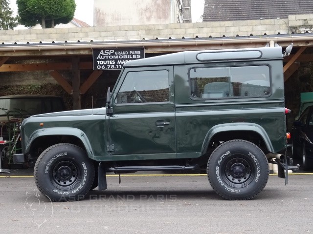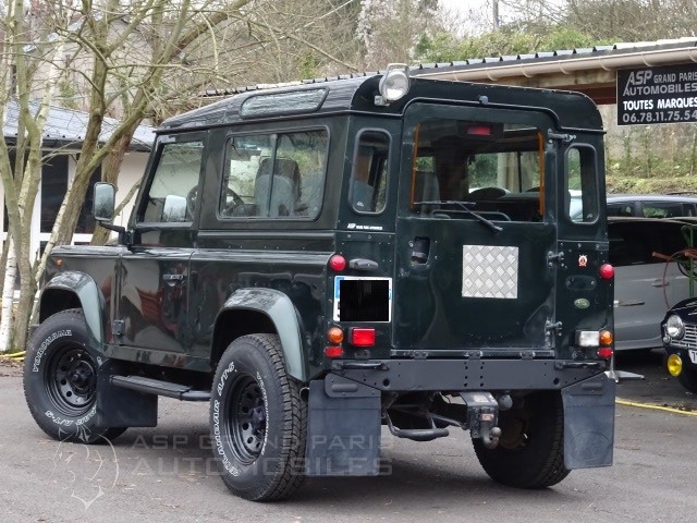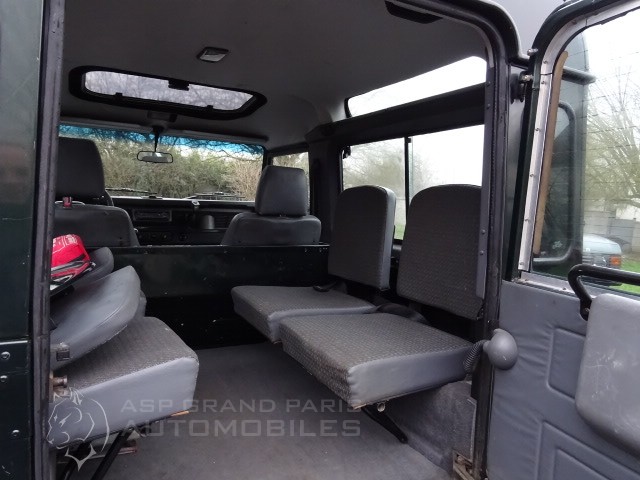 LAND ROVER DEFENDER 90 STATION WAGON 7 PLACES en parfait état d'origine avec seulement 108000km, vert métal sellerie tissus gris finition COUNTY HIGHLANDER avec hard top, toit ouvrant vitré d'origine, attelage, par brise rabattable, direction assisté, moquettes avant et arrière, fermeture centralisé, marches pieds, bavettes, radio lecteur de cd, phare arrière ce véhicule dispose de son carnet et double de clefs